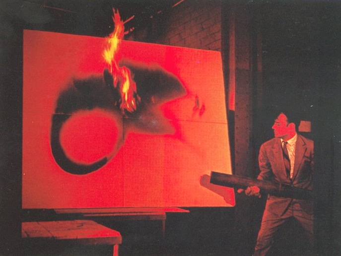 Yves KLEIN - 196x brulant une toile au lance flammes