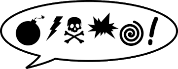 icône, symbole ou petit dessin exprimant une pensée ou un sentiment. Par exemple, une ampoule allumée représente "avoir une idée" , les étoiles indiquent la douleur, une tete de mort, une bombe, un éclair, remplacent les jurons