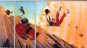 - temps qui passe entre deux cases ou deux scènes. L'ellipse permet de sauter des événements sans importance afin de ne pas casser le rythme de l'action. (ou au contraire de ne pas montrer un événement important pour accentuer un suspense, une sorte de frustration voulue)