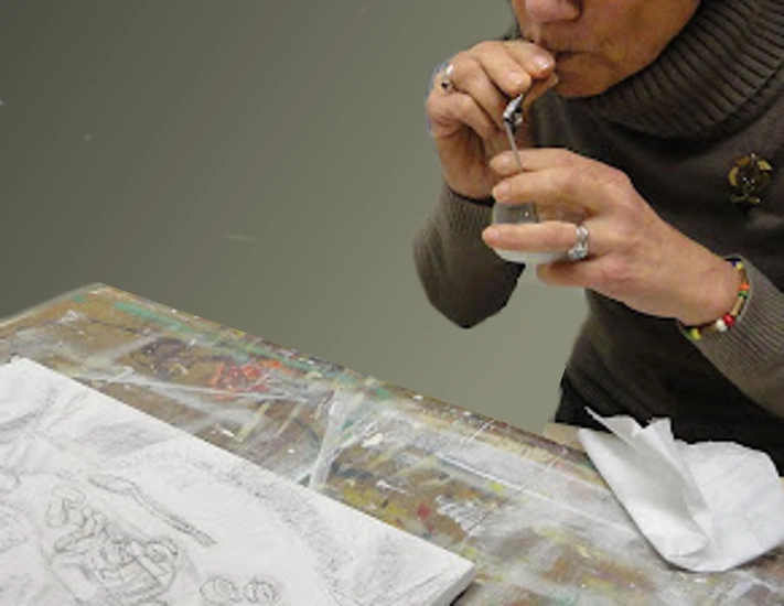 - Produit à pulvériser sur les matériaux fragiles (fusain, pastel sec, etc.) pour qu’ils soient stabilisés et adhèrent au support.