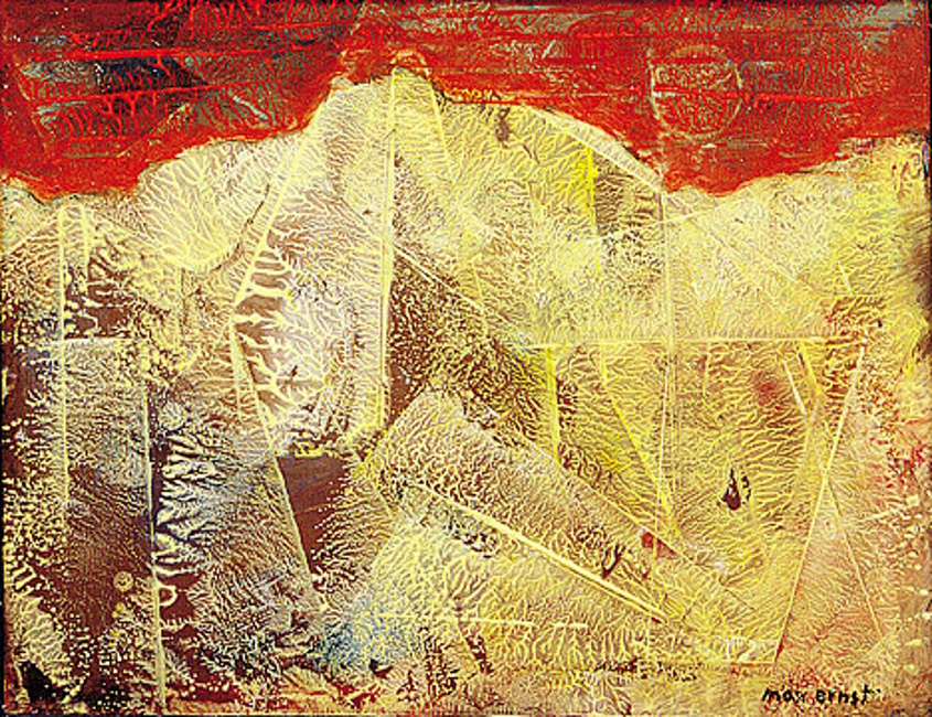- Geste pour relever des empreintes du réel (au crayon, à la craie, à l’encre typographique, à la peinture, etc.). Max Ernst, notamment, a utilisé ce geste dans sa création picturale (Grande forêt allongée).