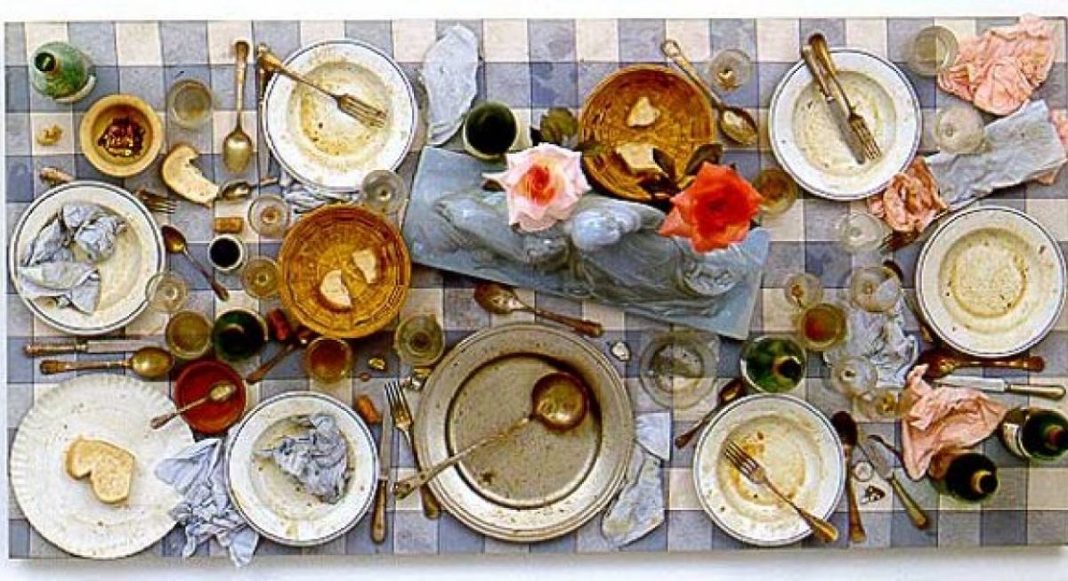 - Œuvre inventée par Spoerri dans les années 1960 qui, après avoir figé en les fixant les objets et reliefs sur la table où s’est déroulé un évènement, par exemple un repas entre amis, redresse la table, la présente au mur pour l’exposer : la table devient ainsi tableau.