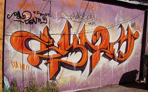 3 - signature peinte avec des aérosols en privilégiant la vitesse d’exécution. Les taggers écrivent surtout les lettres de l’alphabet sur toutes sortes de supports